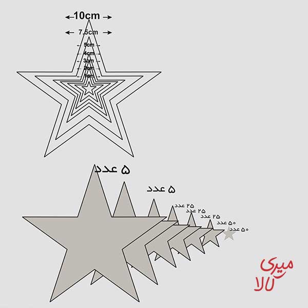 مولتی استایل آیینه ای ستاره در سایز های مختلف جهت استفاده در صنایع دستی و قاب سازی و آیینه کاری