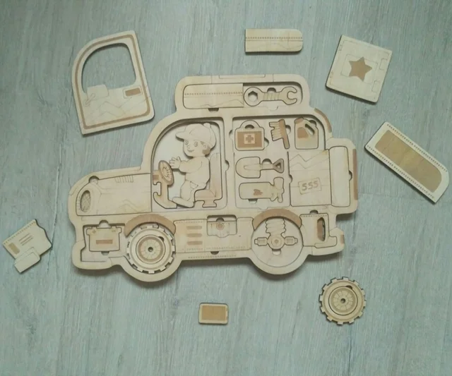 بازی چوبی کودک طرح پازل ماشین با تمام وسایل جداگانه