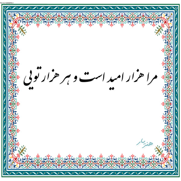حروف کالیگرافی مرا هزار امید است و هر هزار تویی