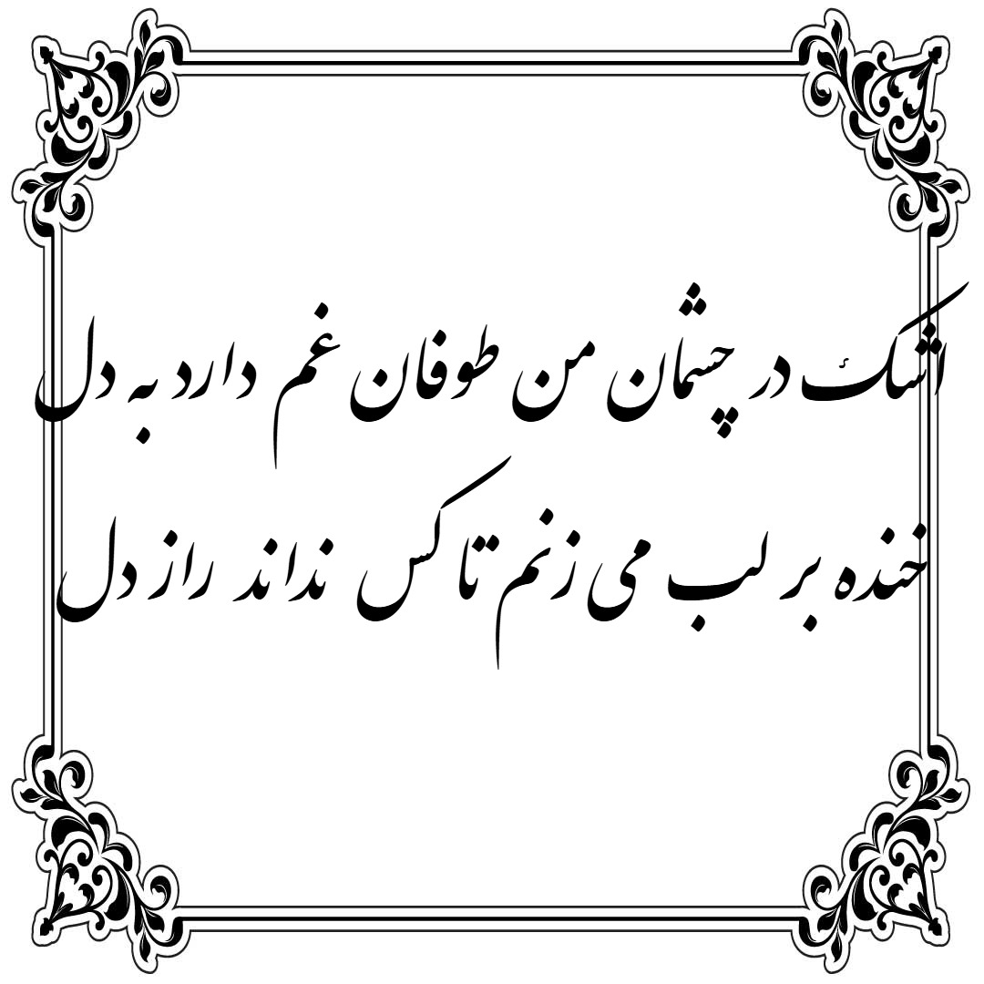 حروف کالیگرافی اشک در چشمان من طوفان غم دارد به دل خنده بر لب می زنم تا کس نداند راز دل