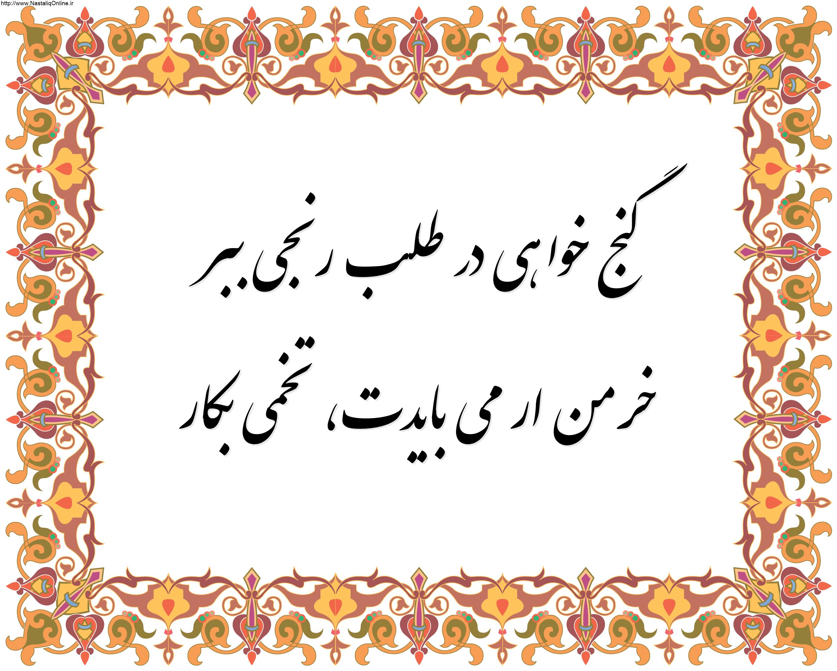 حروف کالیگرافی گنج خواهی ذر طلب رنجی ببر...