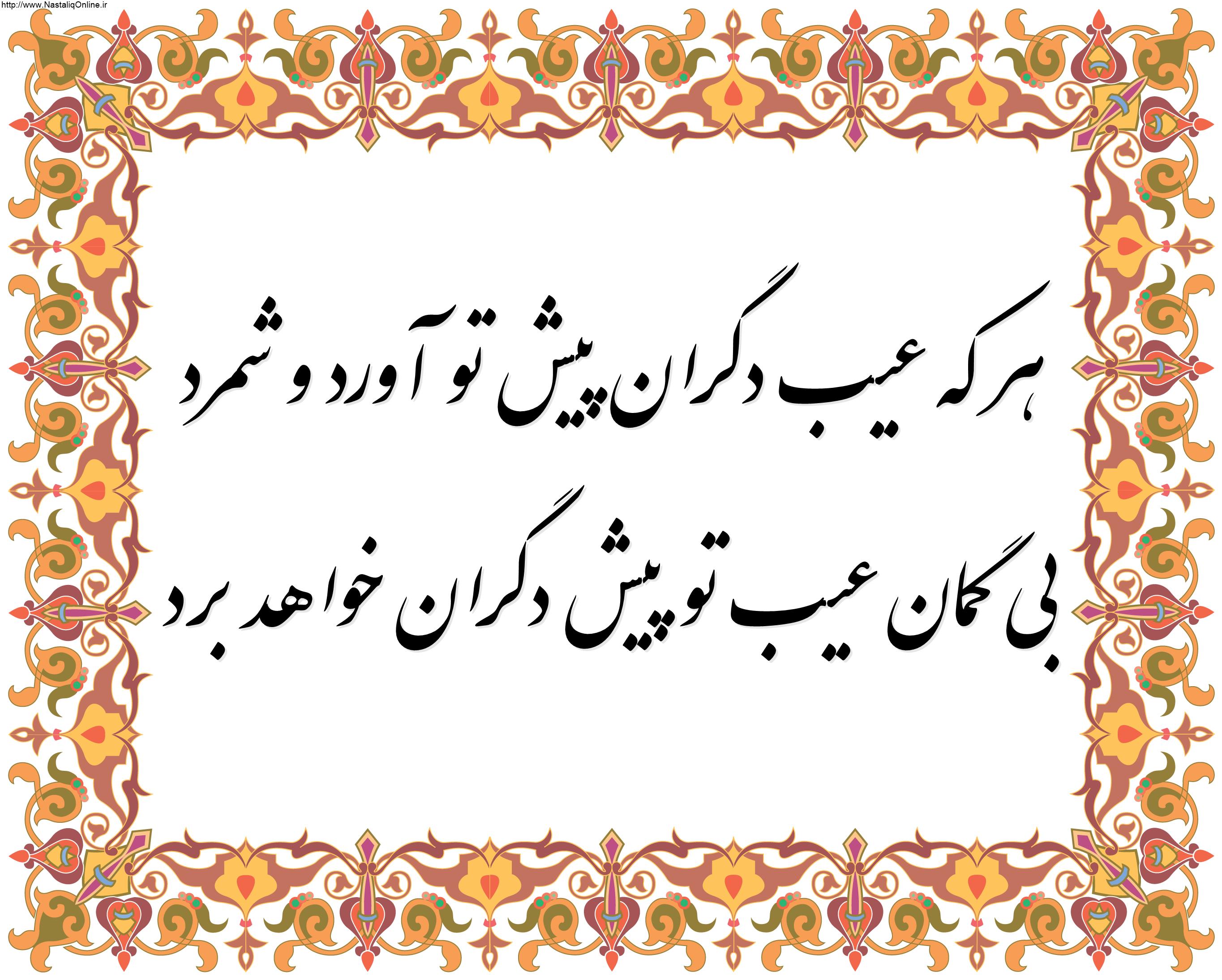 حروف کالیگرافی هر که عیب دگران پیش تو آورد و شمرد بی گمان عیب تو پیش دگران خواهد برد