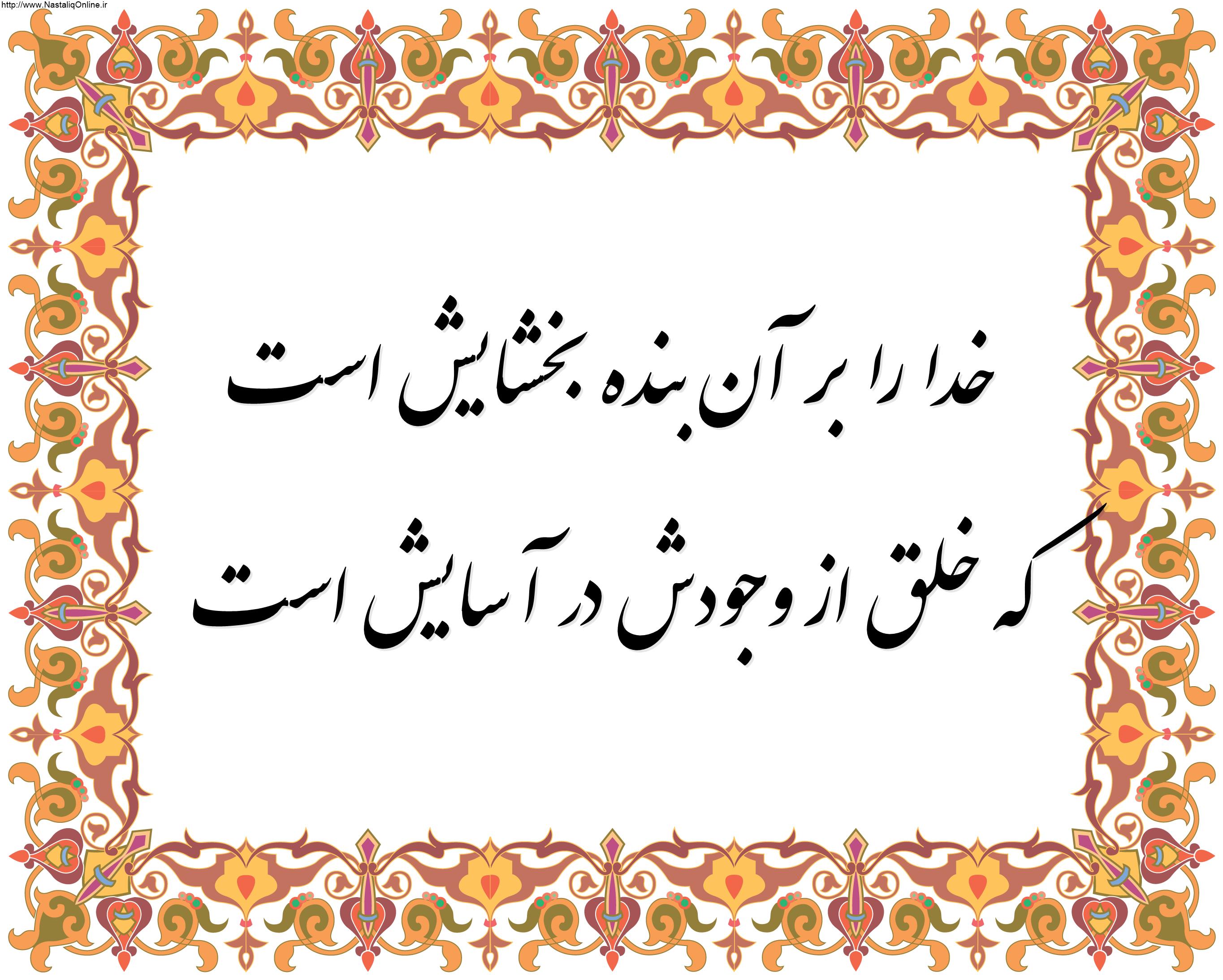 حروف کالیگرافی خدا را بر آن بنده بخشایش است که خلق از وجودش در آسایش است