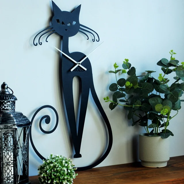 ساعت دیواری مینیمال طرح گربه قد بلند