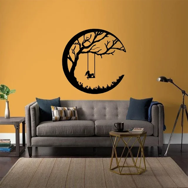 استیکر چوبی دختر تاب باز روی ماه FD4104